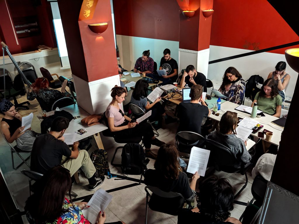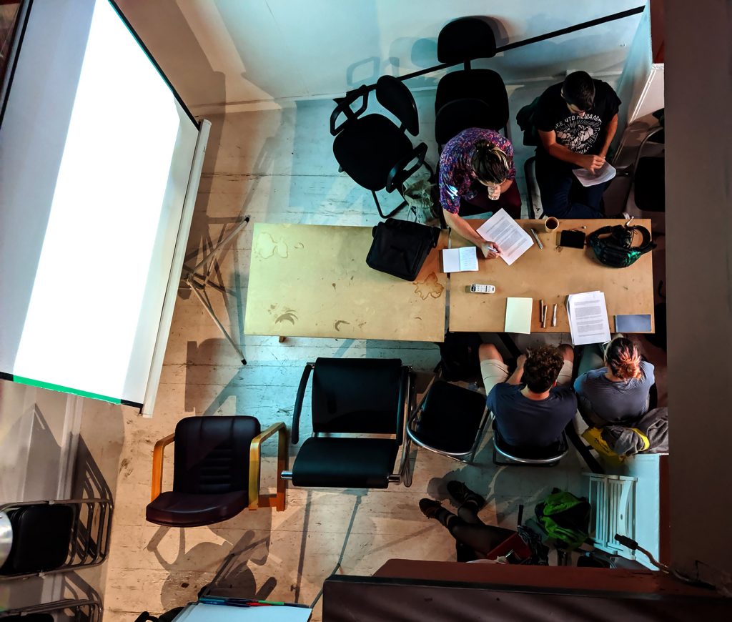On October 29th, ViZ Laboratory for Visual Culture, hosted the introductory meeting to the new workshop of the ongoing project The Text of Appearances. For this occasion, the duo team of The Text of Appearances (Maria Glyka, Dimitris Rentoumis) organized a study group of the essay “The carrier bag theory of fiction” by Ursula K. Le Guin in collaboration with Studio 11 asfa (Lab11) and ASFA Studio Poka-Yio (Lab12) of ASFA. They also invited the Indian artist and storyteller Paribartana Mohanty for a lecture-performance with the title “Mia Marcos and his art project”.