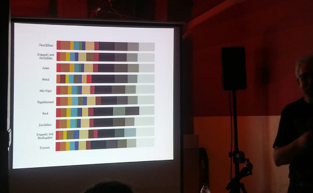 In both theory and everyday language, we say that images reflect the values of the society they are produced in. If this is valid, could we say the same about colors? The simplifications of unequivocally associating particular colors with specific values or psychological features are insufficient and fail to address the richness of meaning pertinent to color. In this talk, Yannis Skarpelos will present a concise proposal for the empirical understanding of this relation by analyzing the paradigm of the album covers in Greek discography, from 1960 to 2016.